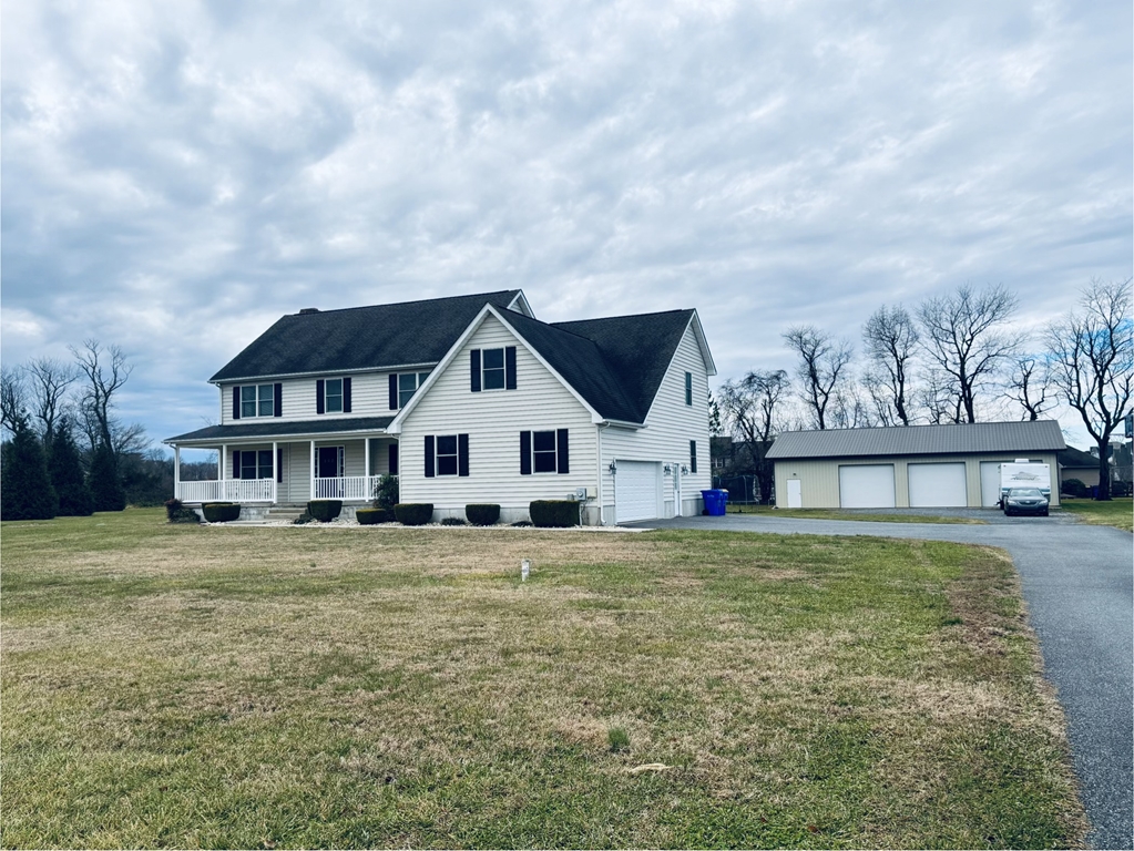 **FYI...Professional Pics scheduled for Friday Jan 16, listing will be updated**. Welcome to this beautiful Custom Built colonial style home with a large covered front porch, in a GREAT location, rural but only minutes from town, nestled on a private culdesac, where privacy is abundant, neighboring some very esquisite homes in the well established private community and No HOA. This is a rare opportunity to live in a great home/location like this for this price. Don't pay New Construction Prices, deal with delays, extended or unknown closing date, and have to pay and build a Detached Garage after closing and wait for grass to grow. We are weeks away from spring and you can be ready to enjoy this home and yard immediately. Do you know those little design wish lists you say you will make in your next home... an extended garage, bathroom located near the garage and back door for quick convenience, a main floor laundry and bedroom, oversized driveway, detached garage for your workshop, boat, ATV's, etc? Well this home has it!!! The detached garage also helped make memories in working on the High School Home Coming Float. Designed as a 5 Bed Room home with 3.5 Baths, with a main floor bedroom and partially finished basement with a bilco walk-out. Each room is spacious and it's a great floor plan. The Kitchen and Family Room are open with a large Breakfast Room in the middle, with a door to the backyard. The large Kitchen has lots of counter space and is great for all your cooking and baking needs, and the large island and bar stool seating is great for hosting gatherings and buffet style meals. The Laundry Room is abundant in size, situated off the garage and perfect to kick off shoes, coats, winter wear, and serve as "Grand Central Station" for book bags, briefcase grab and go each morning, as well as the laundry needs and it has a door to backyard. The Powder Room is adjacent to Kitchen, Laundry and Garage is the Perfect location in this floor plan. The Family Room has a cozy fireplace and is great spot for everyone to relax. The Dining Room previously used as a play room, is spacious for gatherings, formal dinners or an office. The UPPER FLOOR hosts the Primary Bedroom Suite (full bath with dual sinks and walk-in closet) located separate from the other Bedrms; A galley style hallway hosts 2 other Full Baths each with dual sinks and Tub/Shower, which was great when their 2-sets of twins were all getting ready for school at the same time, and the other 4 Bedrooms and a Walk-in Bonus Room used for storage or would make an awesome walk-in closet or quiet office. There is also a pull down stairs to the attic with partially flooring and could be used for storage if desired. Partially finished BASEMENT offers plenty of uses for the space, includes the custom bar and Vintage Pool Table; currently used as a Bar / Pool Room, Fitness Room and a another relax area to play ping pong. HOME GARAGE: Oversized 2-car garage plus a separate bump out area for seperate storage away from the auto's and has a person door for easy access and not to open the garage doors ever time. DETACHED GARAGE: Detached Garage 40x60, 12ft Ceiling Height, concrete floor, with 3 garage doors and a person door, separate electric panel and water pump located near the door. This was a great multi-use space for workshop, boat, crabbing items, lawn mower, ATV's, bikes, scooters, trailers, and worked out great for working on the High School Home Coming Float too. DRIVEWAY: oversized to the home/garage and oversized for parking and access to the Detached Garage. Great for hosting gatherings and parking needs. OTHER: Dual Zoned for Main and Upper Floor, with Unit 1 in Basement and Unit 2 in Attic. Septic is located on the Left Side of home so if you want to build a pool, patio, etc, you have plenty of room in the backyard. The 500 gallon propane tank located front left side near front porch. Home/Lot size and Taxes provided by County.